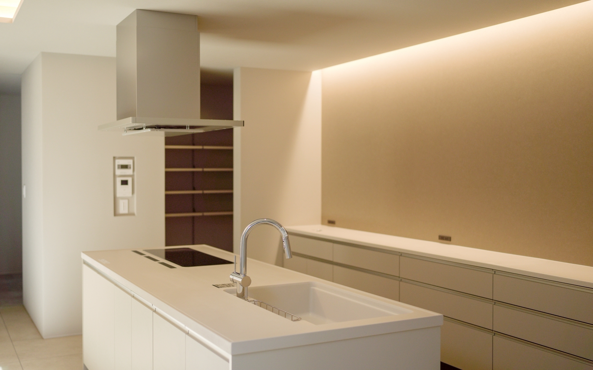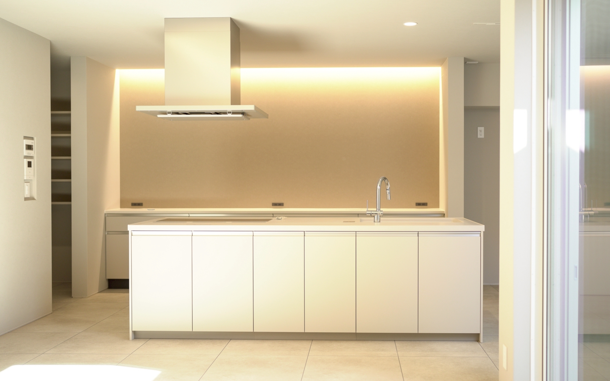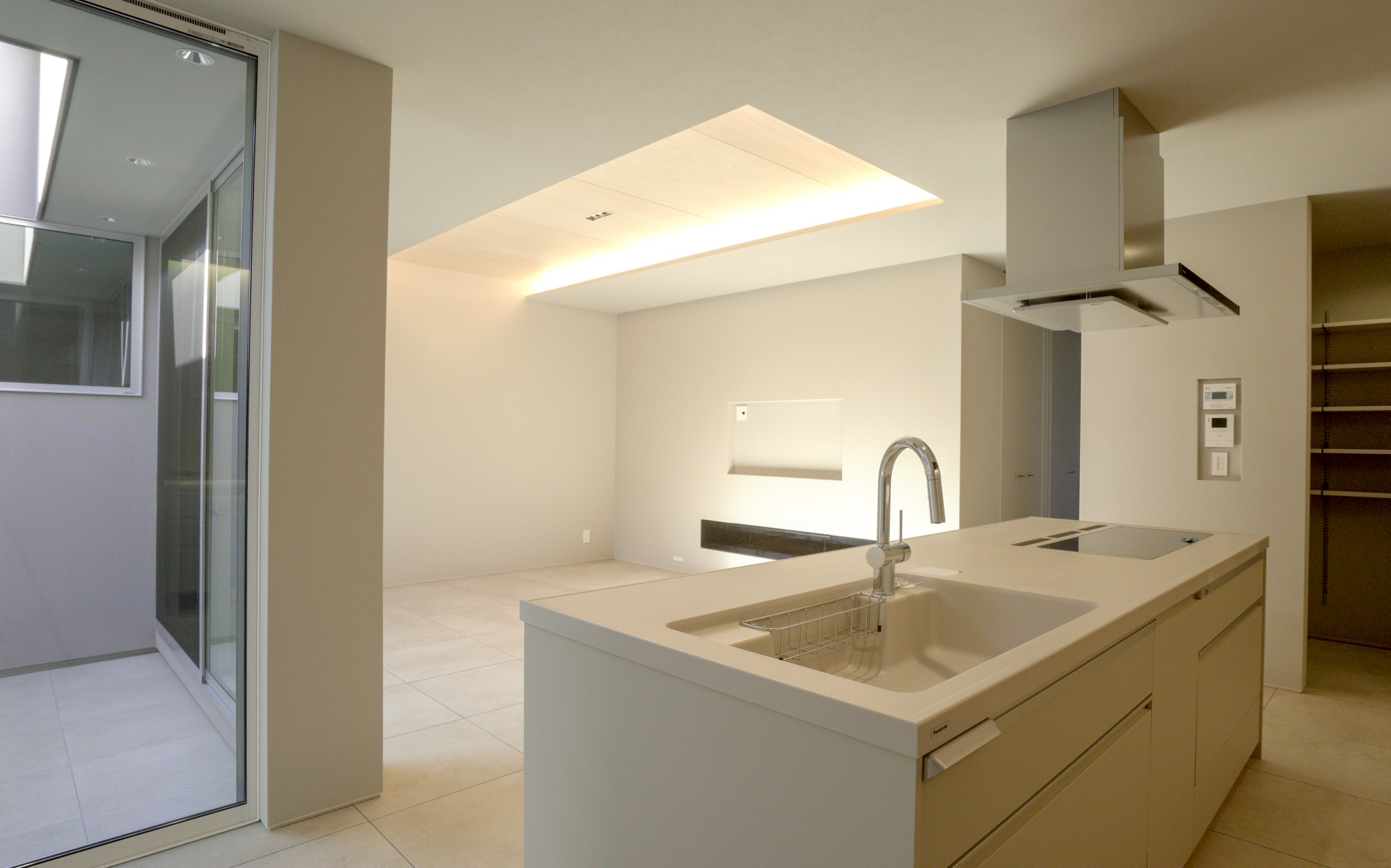 ベージュを基調に光をデザインしたLDK 間接照明と自然光の織り成す上質な空間。
