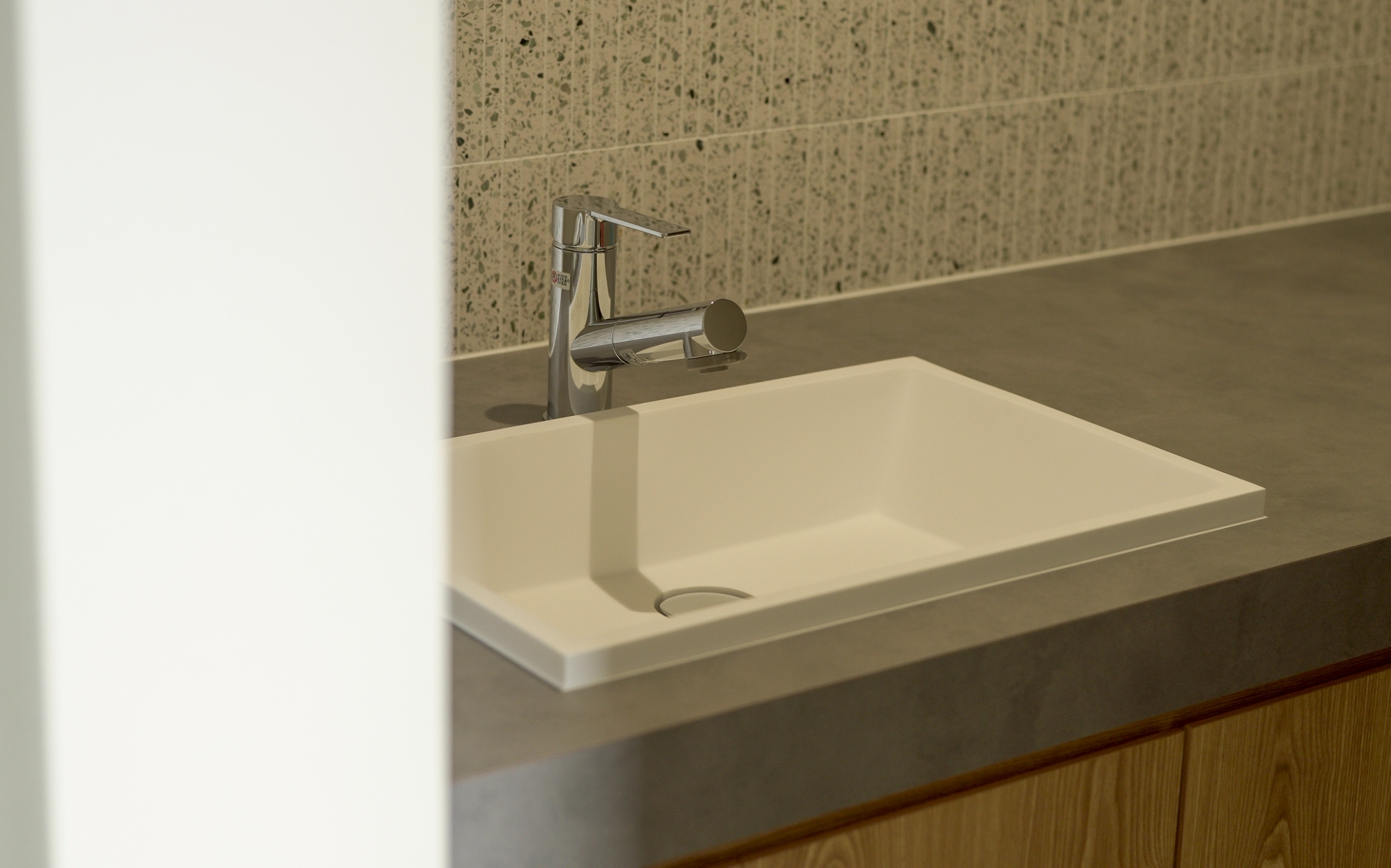 造作洗面化粧台はテラゾータイルが映える素敵な空間に 毎日使う場所だからこそ、こだわりを。