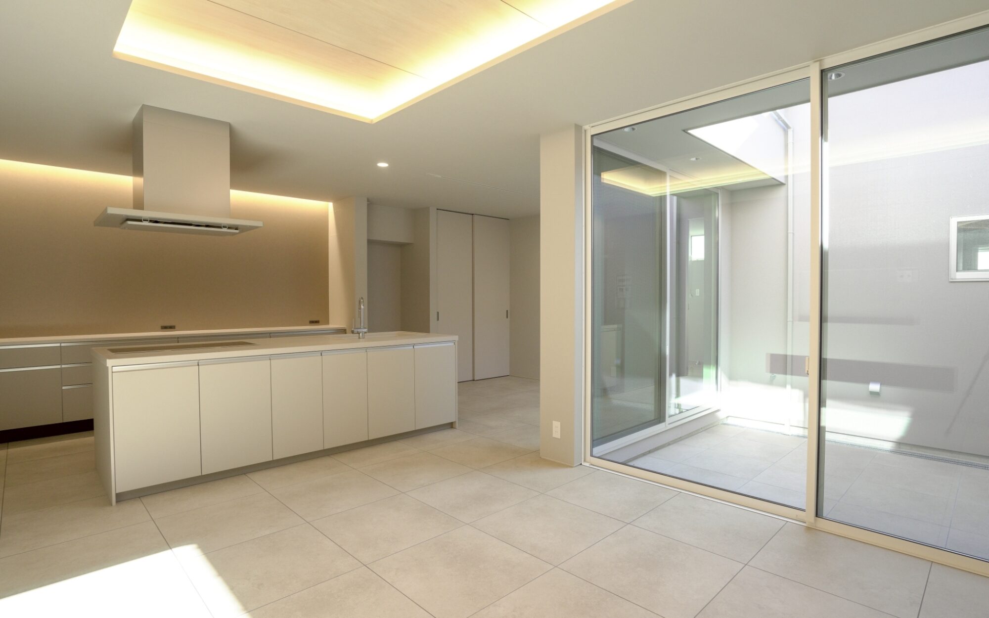 ベージュを基調に光をデザインしたLDK 間接照明と自然光の織り成す上質な空間。